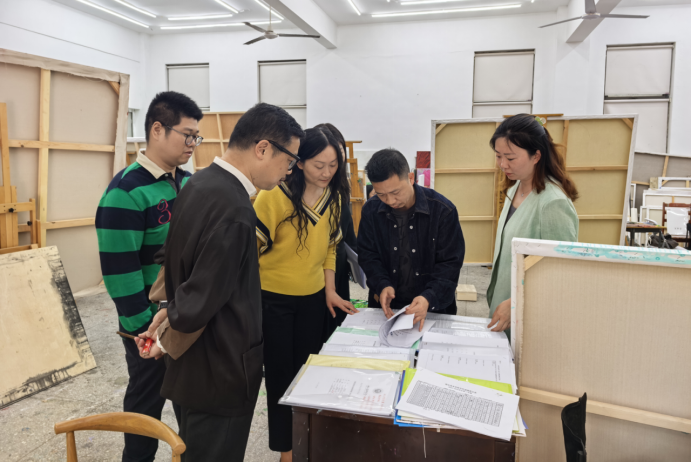 检查组围绕毕业创作(设计)与论文两大核心板块展开全面审查。检查组详细了解各专业毕业创作(设计)作品的整体推进情况,针对作品进度,重点核查各专业完成比例、阶段推进情况及时间规划合理性;仔细检查了学生毕业论文的撰写进展,包括开题报告、文章进度以及修改完善情况,同时审查指导教师对毕业论文的指导过程记录和把关情况,以确保论文能够高质量完成。检查组还通过实地走访与学生随机访谈,检查组直观了解当前教学现状,掌握学生创作瓶颈与实际需求,以提供针对性指导。
